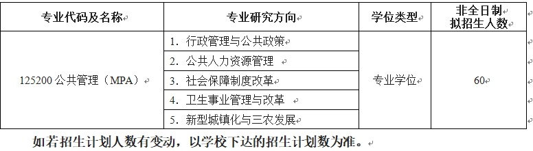 2026年管理学院MPA招生计划为: